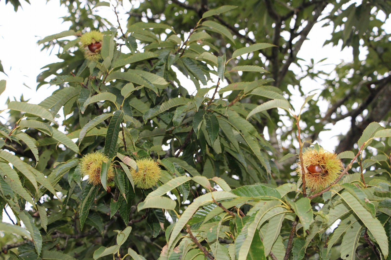 「みっけ」10のイガイガが口を開き、しっかりと栗になっちゃて、豊作だー。