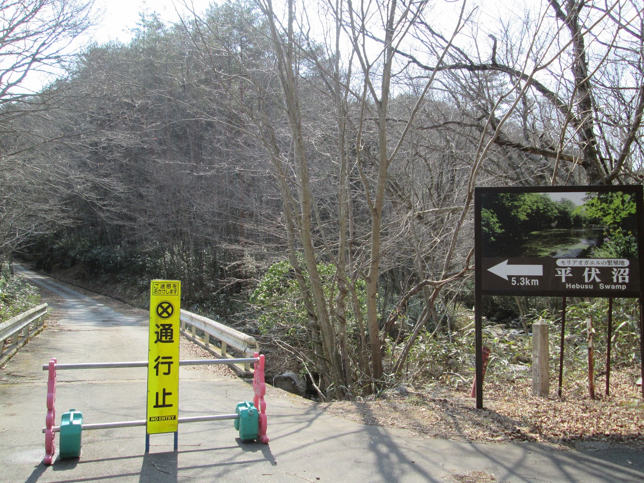 ■千扇川沿いに平伏沼に向かう箇所、道が二股に分かれる場所で通行止めとなっております