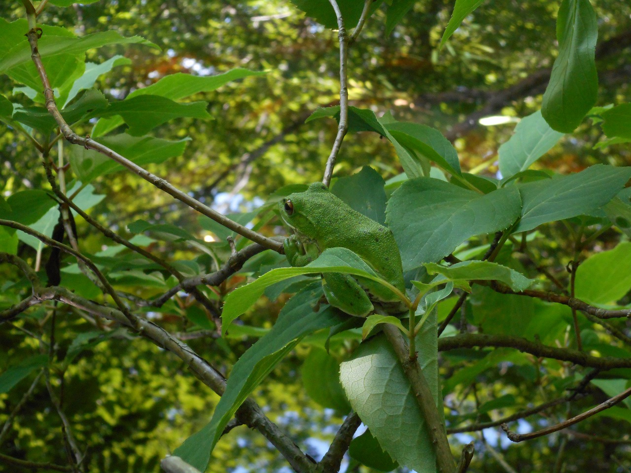 天気が良いせいか、モリアオガエルは見かけるものの木の日陰になる場所で大人しくしているのが多かったです。